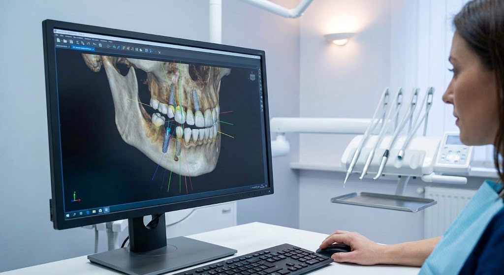 Используется для виртуального моделирования будущего результата и точного позиционирования. Позволяет подобрать оптимальное расположение искусственных корней.